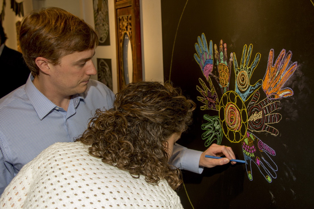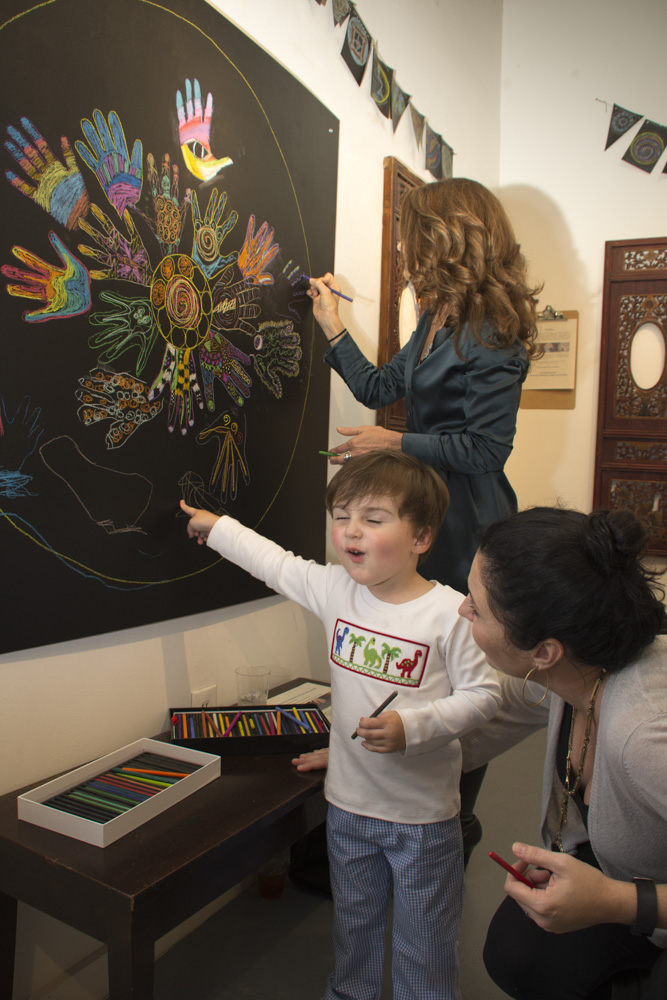 On Thursday, October 29th, 2015, we hosted A Tibetan Evening - a preview openingAgata, one of our incredible board member, helps me greet our guests.My grandson Wyatt is thrilled to contribute to our Community Mandala.Our Community Mandala of Hope and Healing was a tremendous hit.Our preview opening was a huge success and now we can't wait for the Tibetan Monks to arrive on November 1st. They are creating a Sand Mandala of Healing for our community.