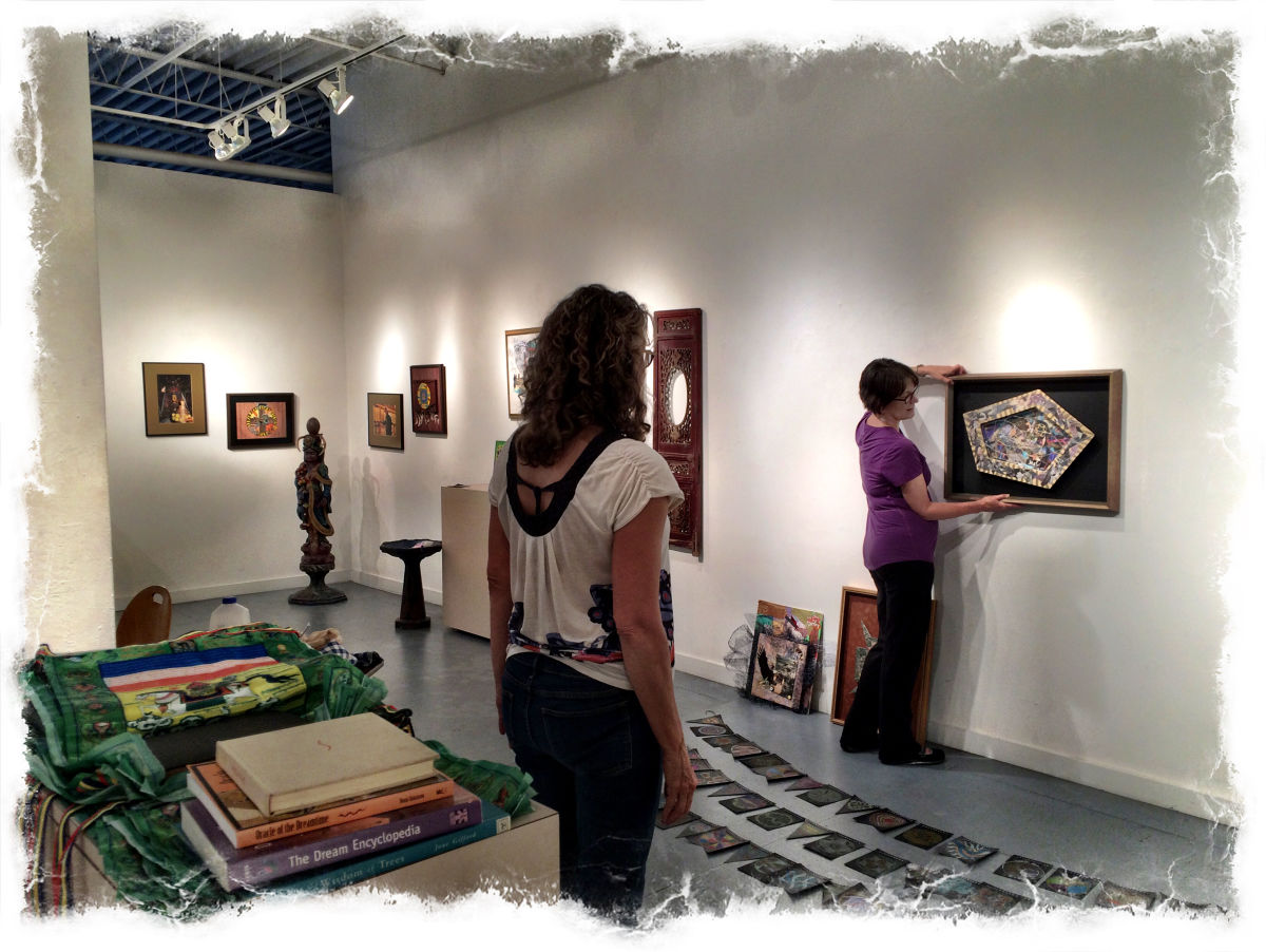 After laying all of the works out in the gallery I called two other wonderful board members, Christy Clonts and Michelle Baker. The good news is we had a full week for our creative juices to kick into high gear and then a full week to make some sort of creative order out of this messy chaos. What a constant metaphor for us.