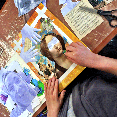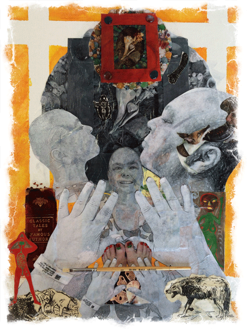 Medium: magazine cut-outs, xeroxed photos, acrylic paint on canvas board