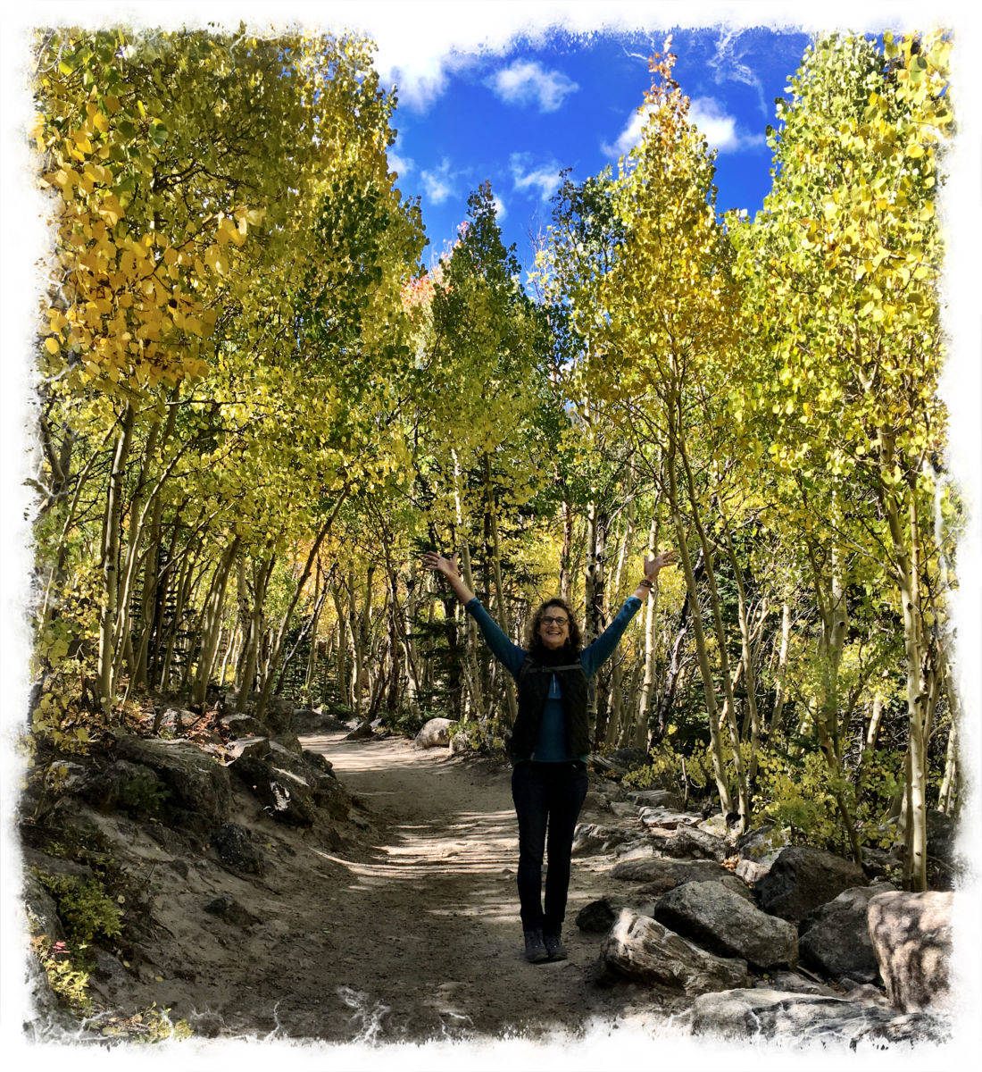 This abiding image quietly guided my thoughts throughout the weekend, keeping me mindful of the different kind of weights we all carry. I am thankful that nature's beauty and wisdom set the tone our gathering. Slowing down into her rhythm, I felt my mind quiet and my heart soften into our wild and crazy and joyous cousin reunion. Planning what hikes to explore was our next "mission." Glacier Gorge Trail was my trail of choice.