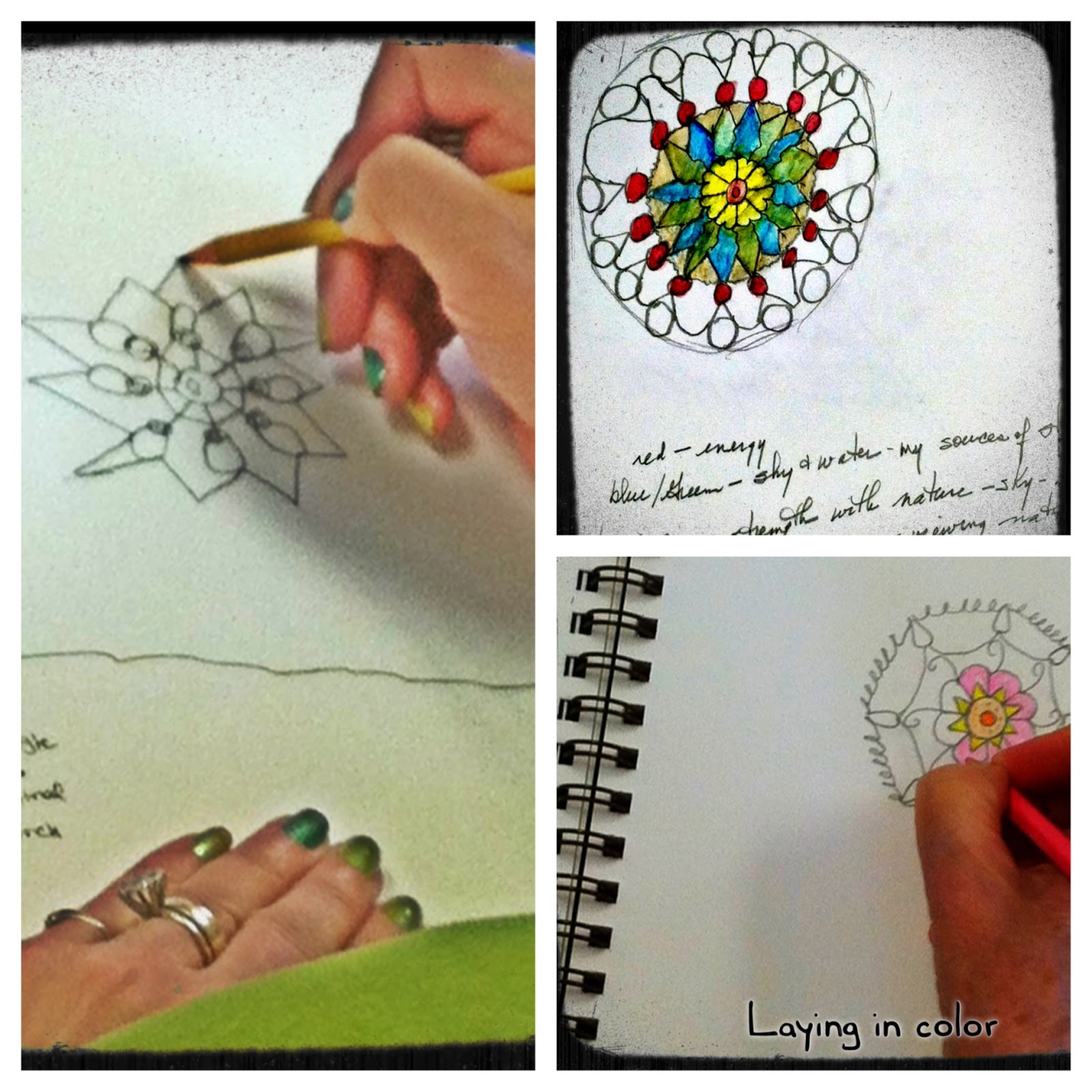 A waterfall of strong, poignant words cascaded within our group through a free-flow writing practice. We took the energy of those words and began to create intentional mandalas for